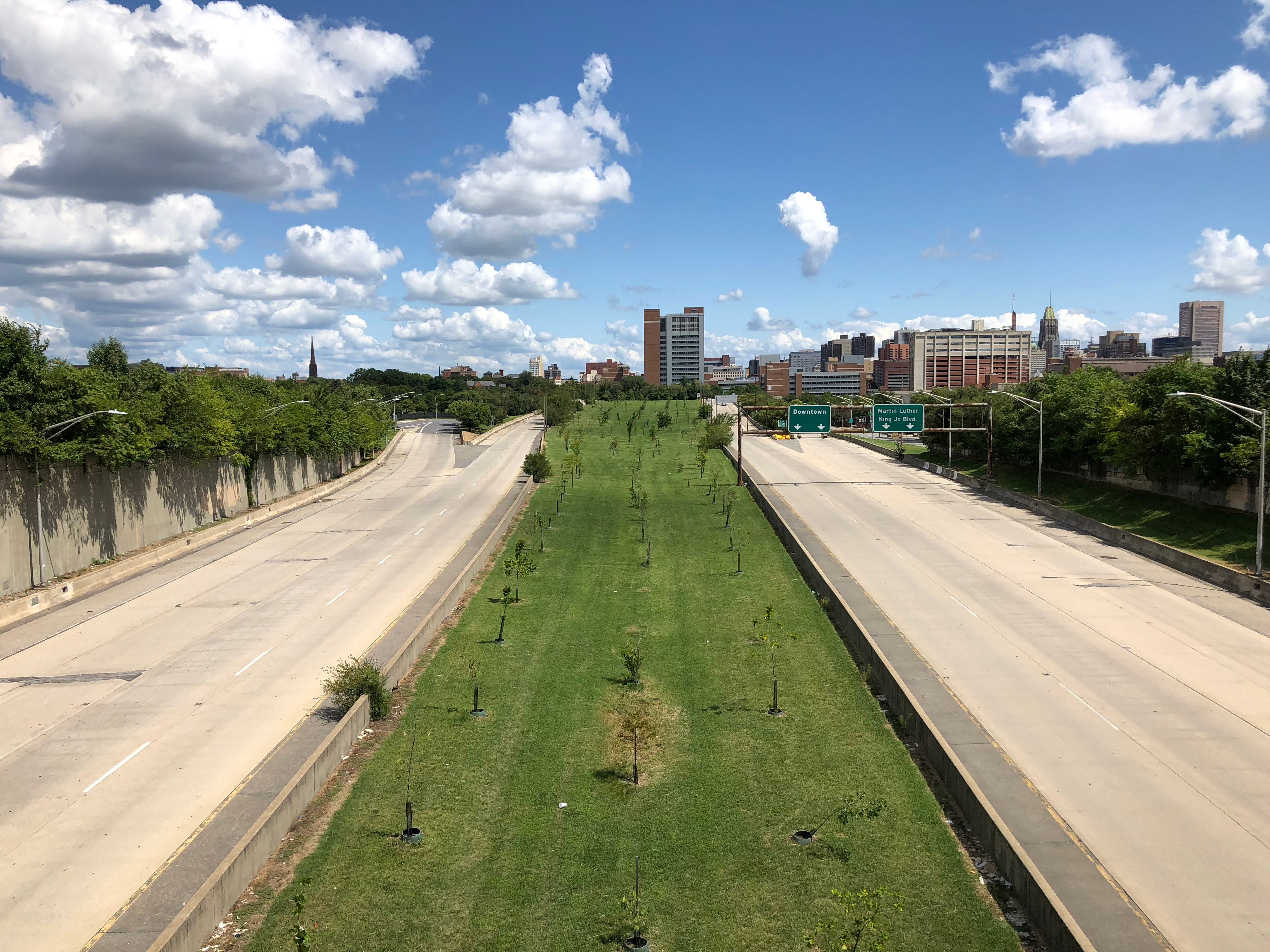 [1] Famartin, “View east along U.S. Route 40 (former Interstate 170) from the overpass for North Schroeder Street in Baltimore City, Maryland,” photograph (Baltimore, August 25, 2019), Creative Commons, https://commons.wikimedia.org/wiki/File:2019-08-25_13_55_21_View_east_along_U.S._Route_40_%28former_Interstate_170%29_from_the_overpass_for_North_Schroeder_Street_in_Baltimore_City,_Maryland.jpg.
